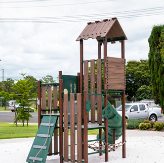 Situated in Gin Gin, QLD, the Gin Gin Neighbourhood Hub is an area that houses a Treehouse Playground to slide and climb on.